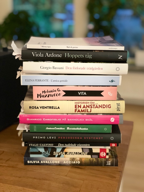 Oliveriets italienska bokcirkel med mat startade 2016. Jenny fick en idé att kombinera böcker med mat och om man vill också vin och det var fler än hon som tyckte att det var en bra idé. Under dessa år har vi läst och diskuterat en lång rad av böcker av italienska författare och lika många tillhörande maträtter.